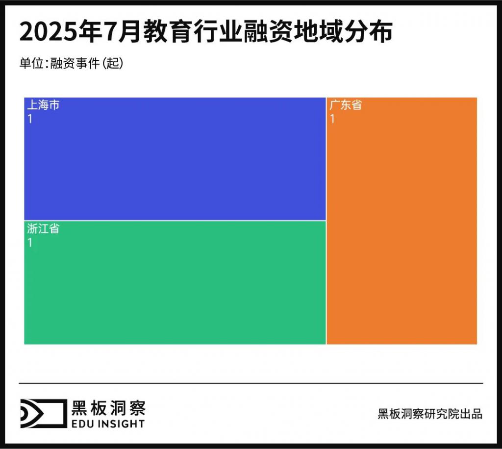 7 月融资地域全国共有 3 个省、直辖市发生融资,其中其中上海市、广东省和浙江省省各 1 起。
